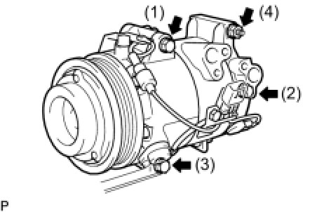 Tighten the bolts in the order shown in the illustration to install the compressor.