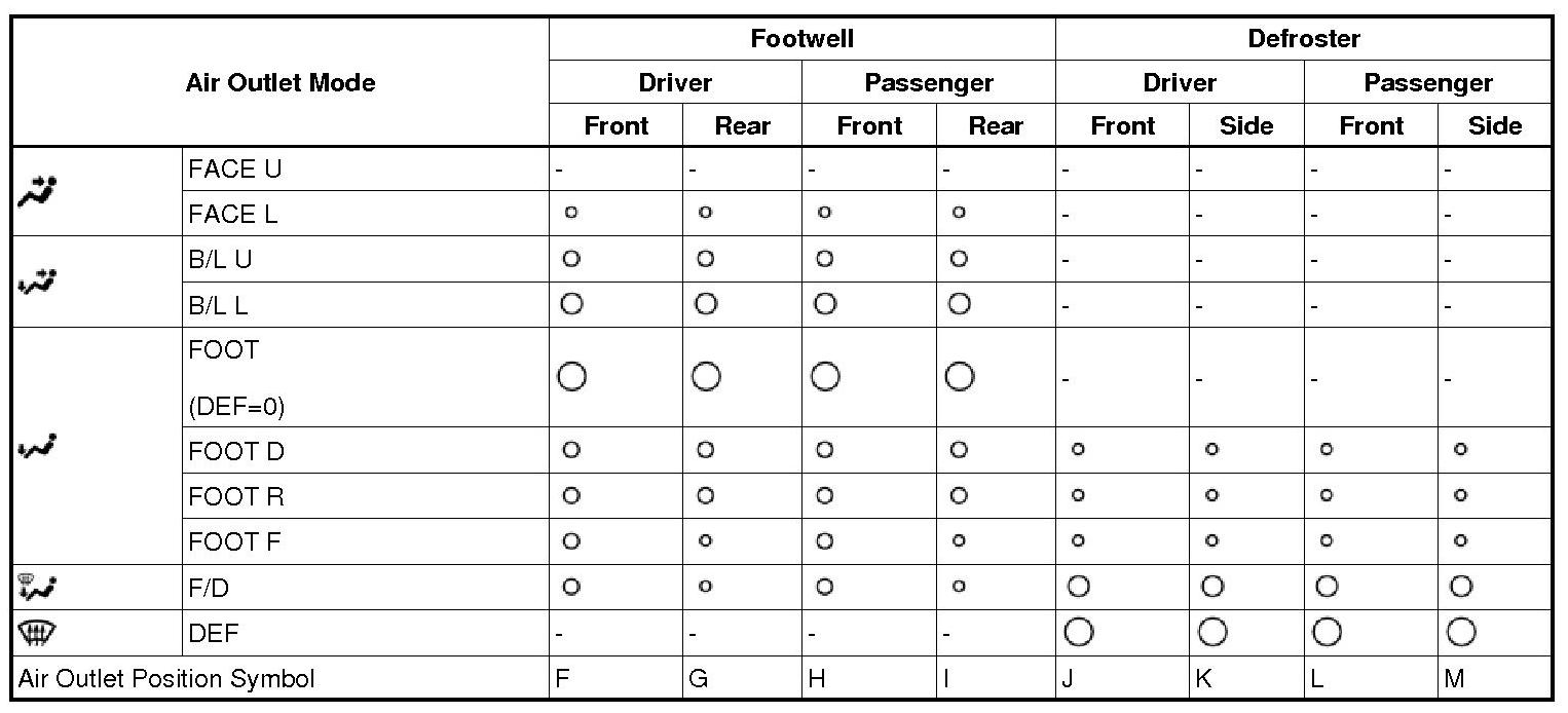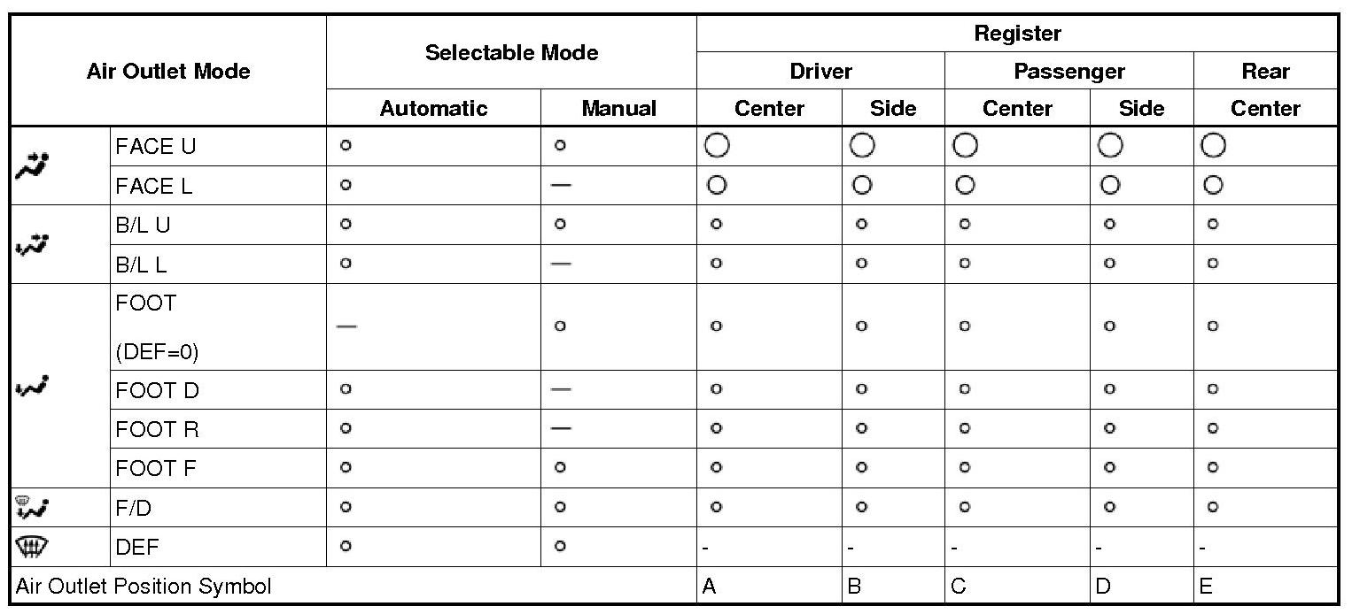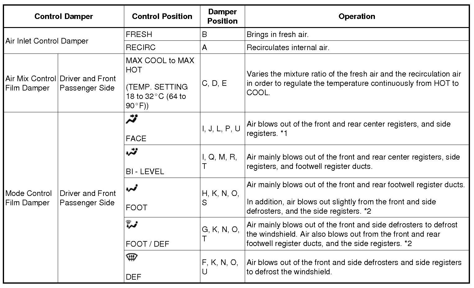 *1: In the multi mode, air blows out of all the air outlets except the front and side defroster.