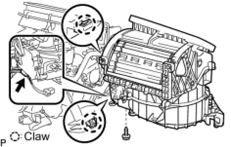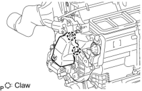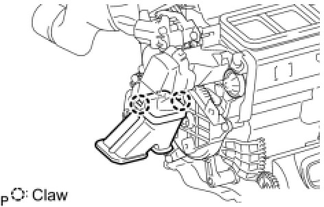 (a) Using pliers, grip the claws of the clip and slide the clip to disconnect the heater water outlet hose.