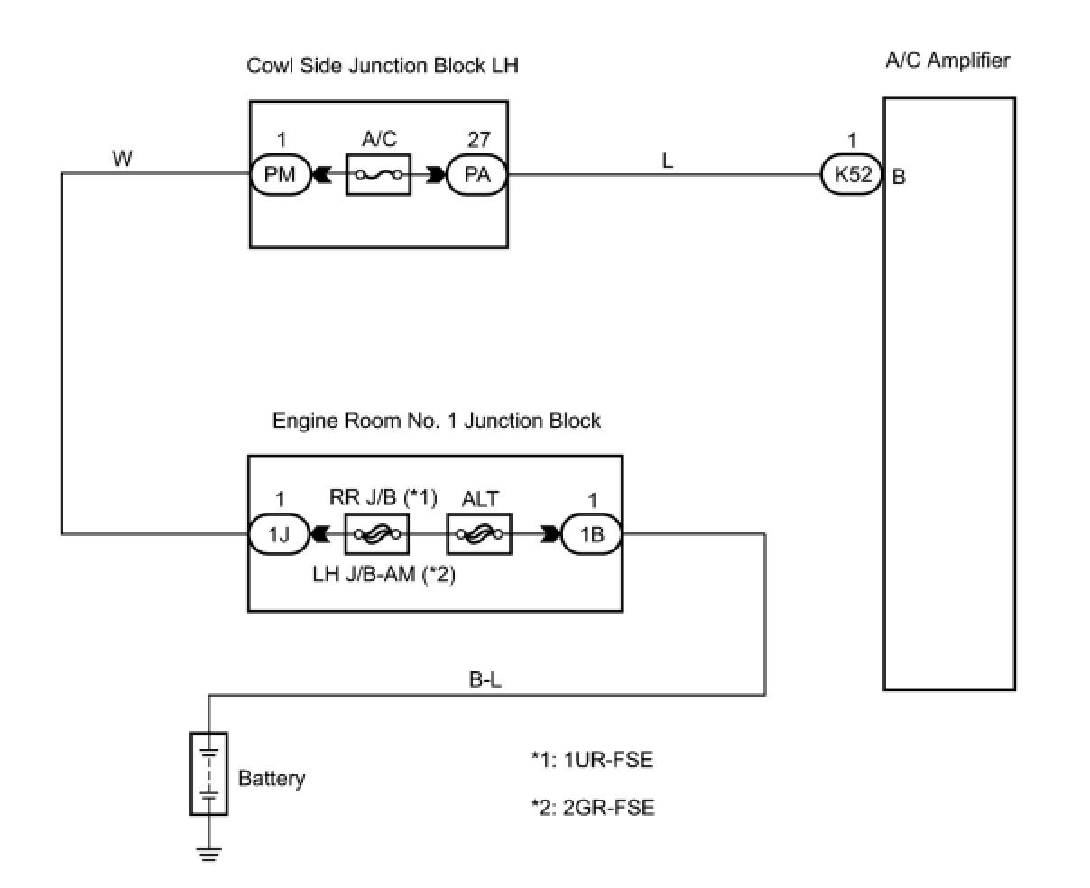 The back-up power source circuit for the A/C amplifier is shown below. Power is supplied even when turning the engine switch off and is used for diagnostic trouble code memory, etc.