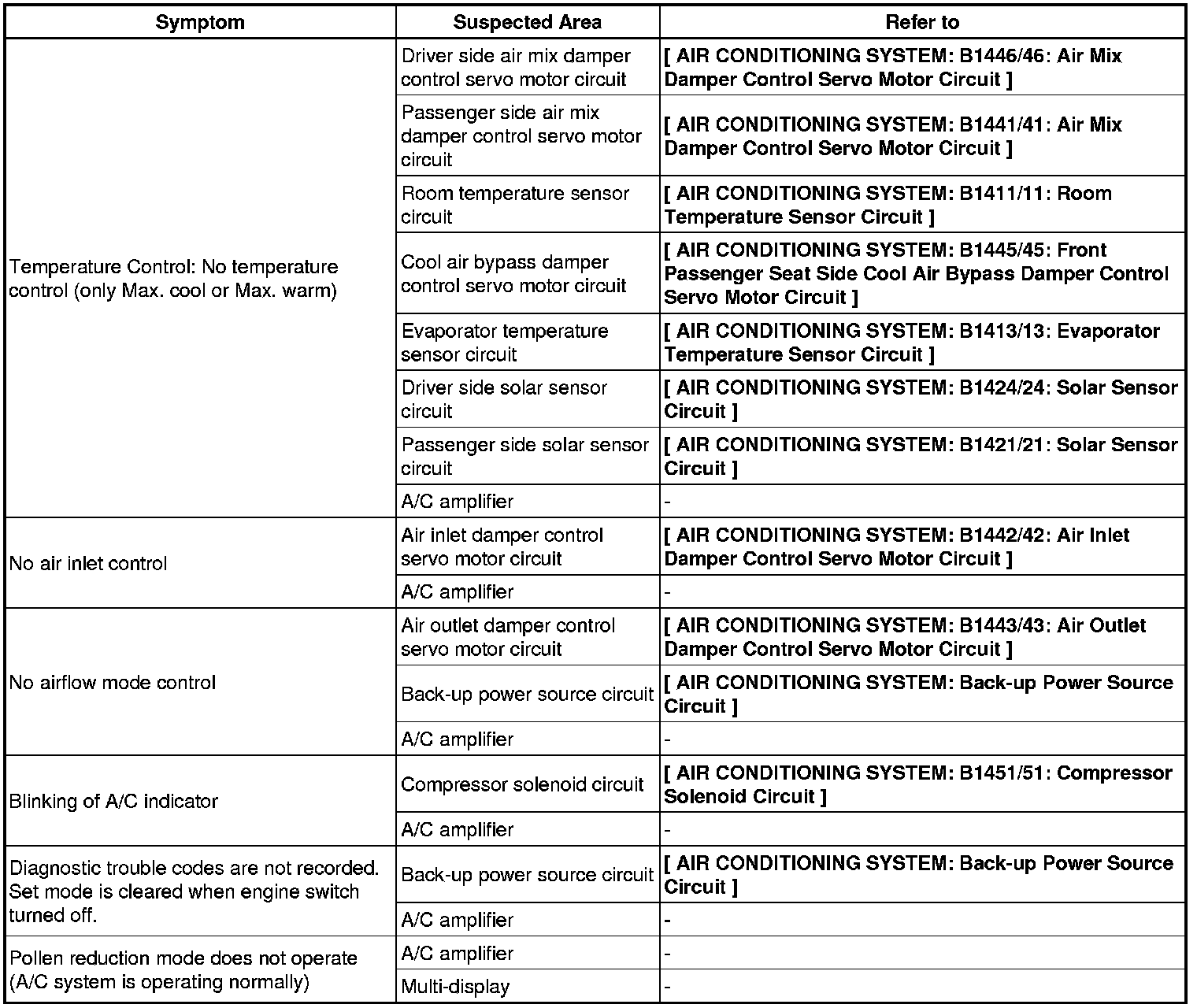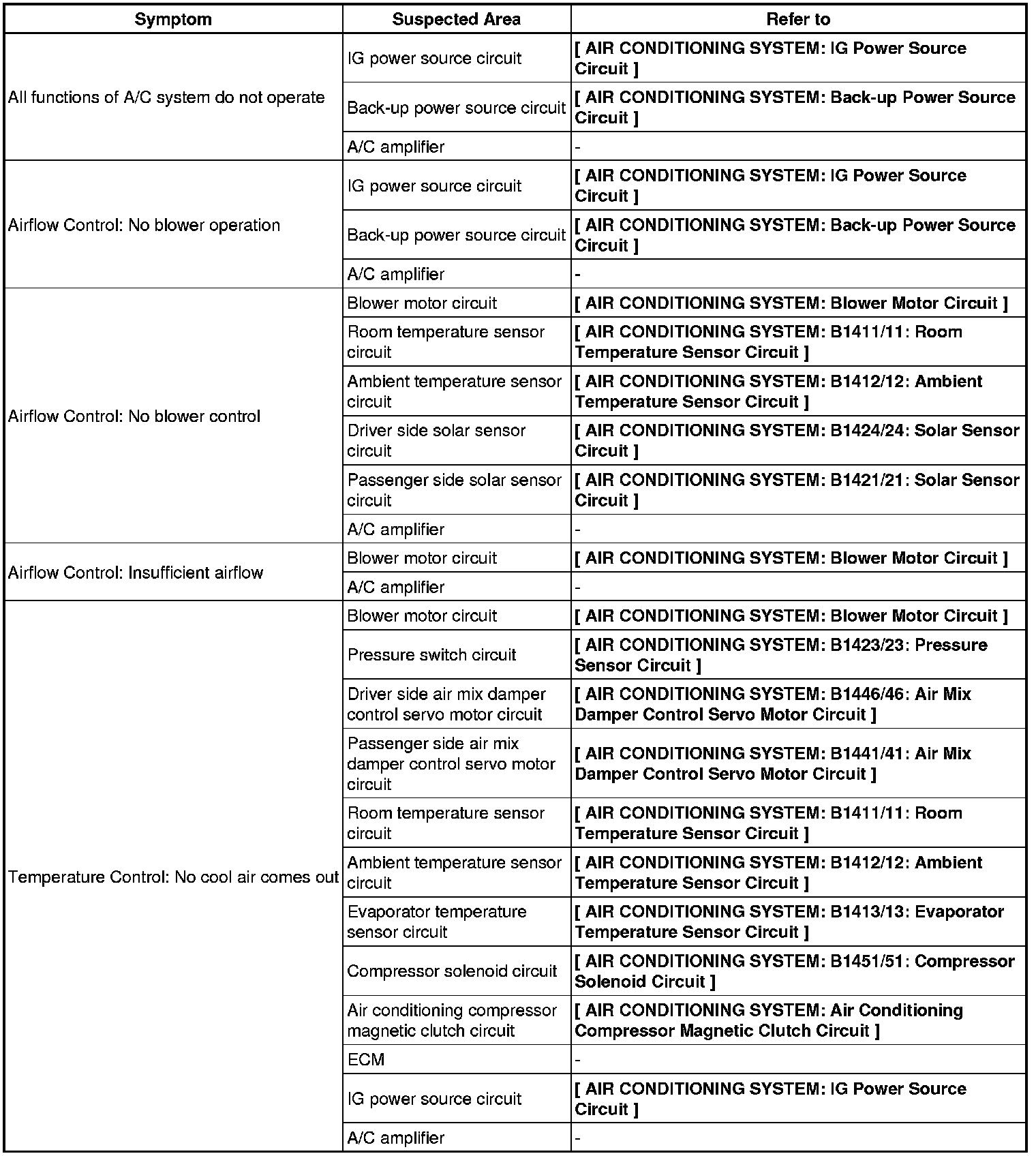 AIR CONDITIONING: AIR CONDITIONING SYSTEM: PROBLEM SYMPTOMS TABLE