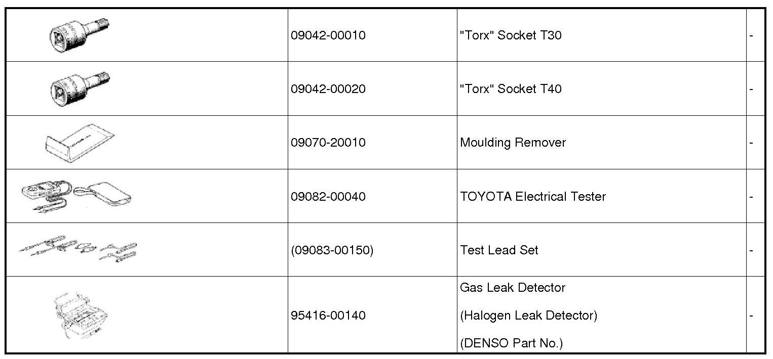 PREPARATION: AIR CONDITIONING: RECOMMENDED TOOLS