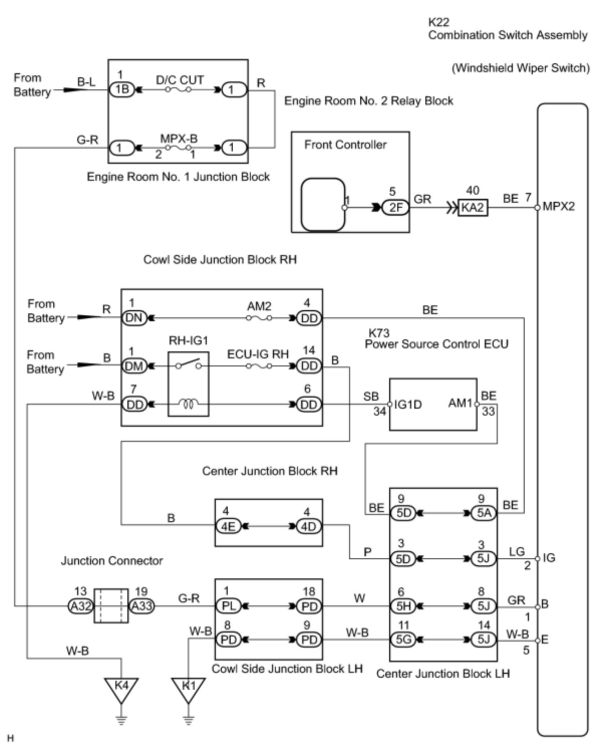 (a) Disconnect the K22 switch connector.