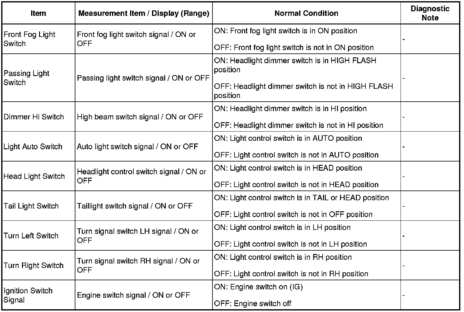 (a) Check the DATA LIST for proper functioning of the combination switch.