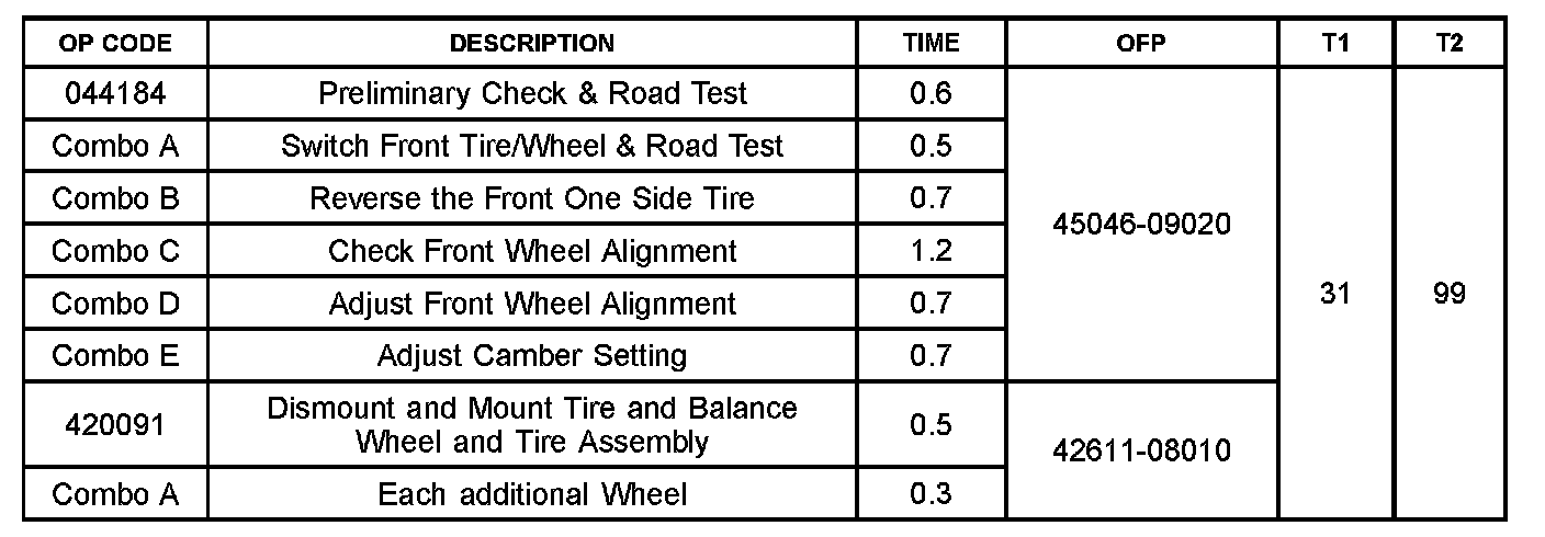 OP Code 044184 and the above combination codes apply to all models with the EXCEPTION of Combo E for IS 250, IS 250 AWD, and IS 350 models.