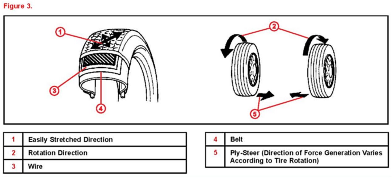 ^ Ply-steer, which changes direction according to the rotation direction of the tires.