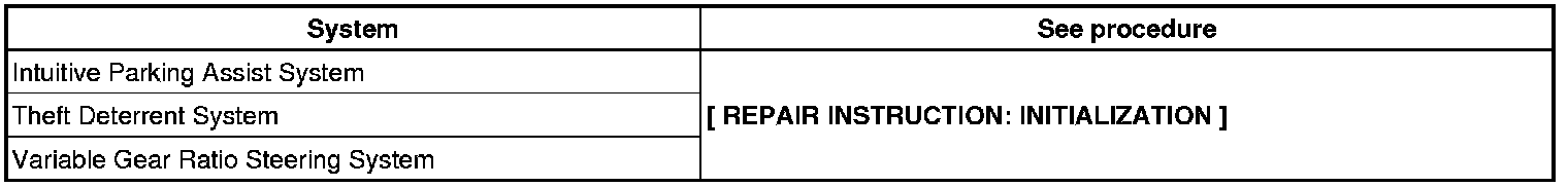When disconnecting the cable from the negative (-) battery terminal, initialize the following system(s) after the cable is reconnected.