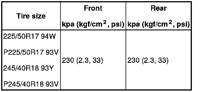 Cold tire inflation pressure: