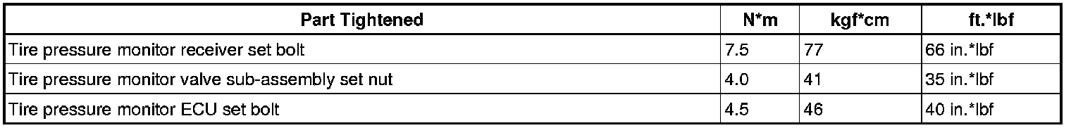SERVICE SPECIFICATIONS: TIRE AND WHEEL: TORQUE SPECIFICATIONS