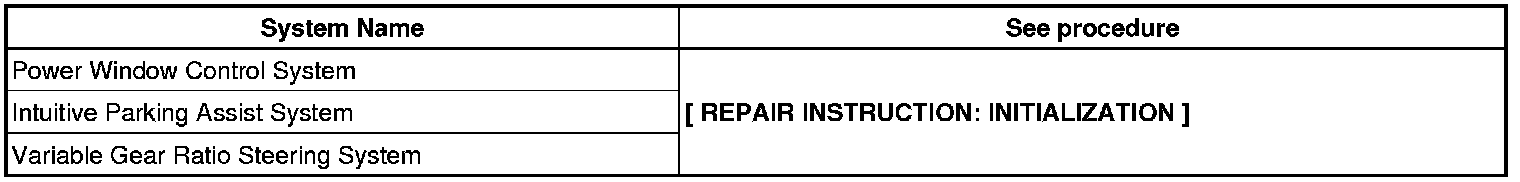 - When disconnecting the negative (-) battery terminal, initialize the following system after the terminal is reconnected.