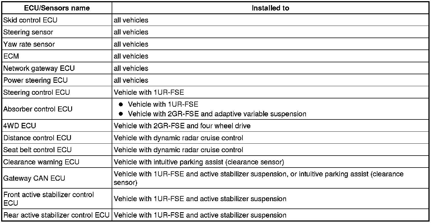 (a) Systems (ECUs, sensors) that use CAN communication vary depending on the vehicle's optional settings. Check which systems (ECUs, sensors) are installed on the vehicle.
