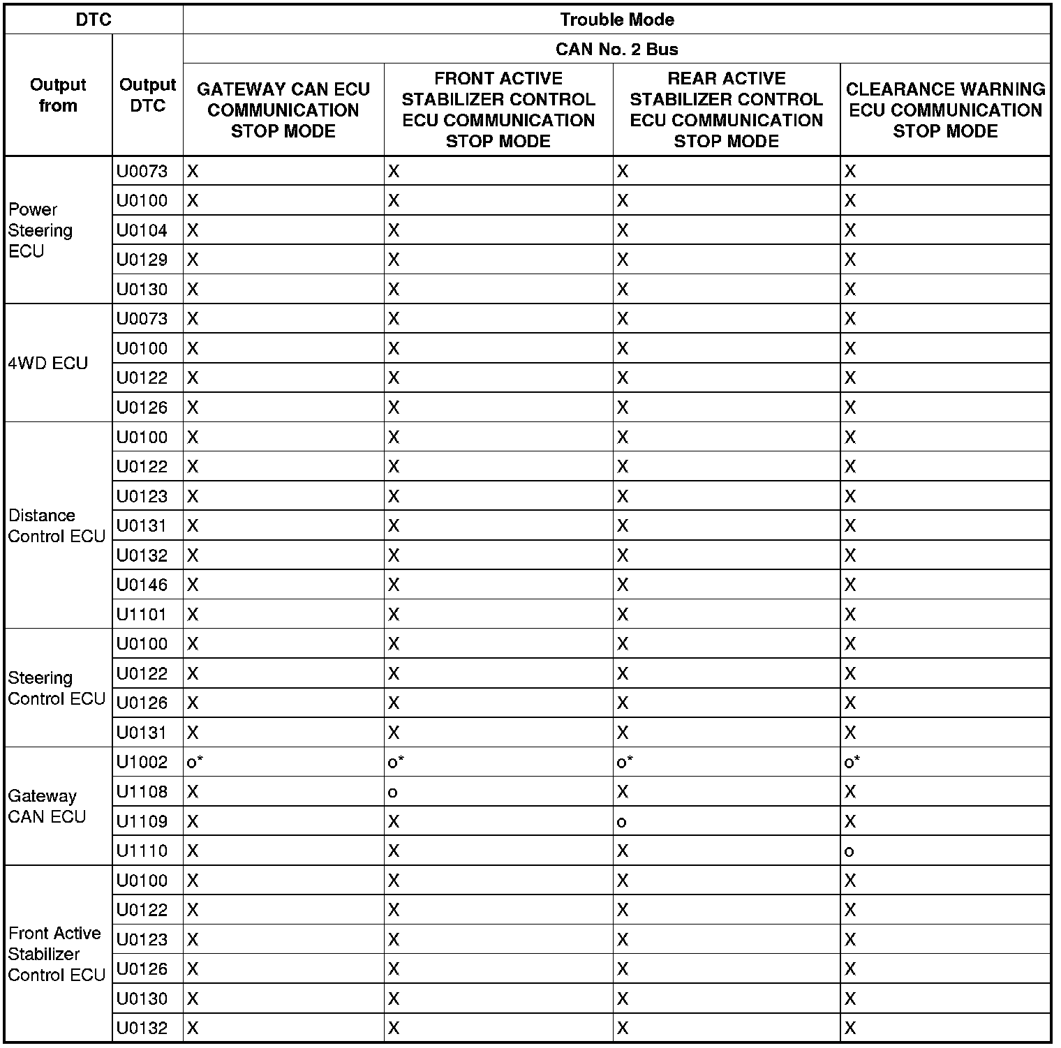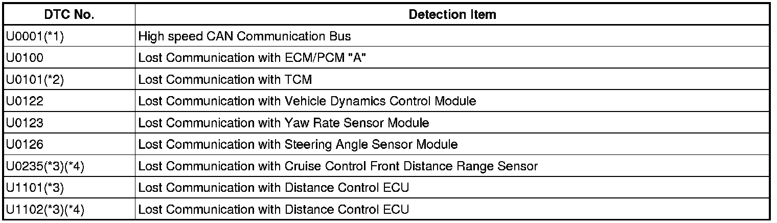 *: When CAN No. 2 communication error other than ECM error, a DTC is stored
