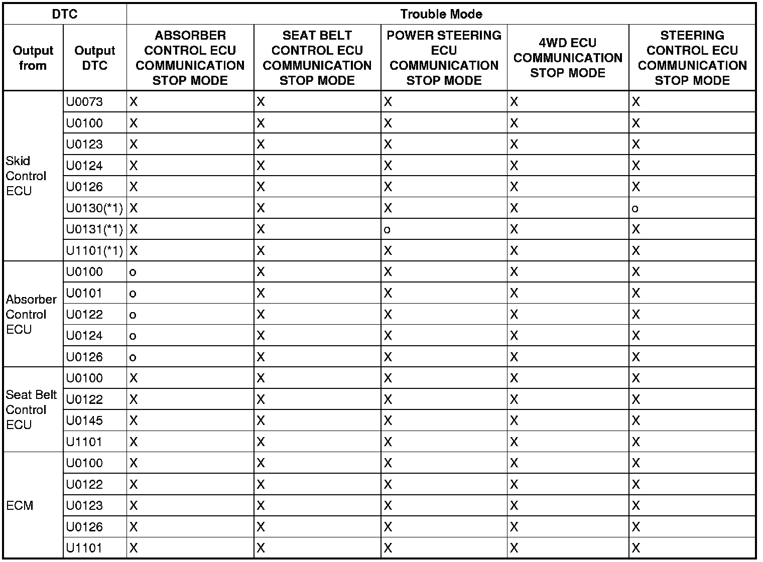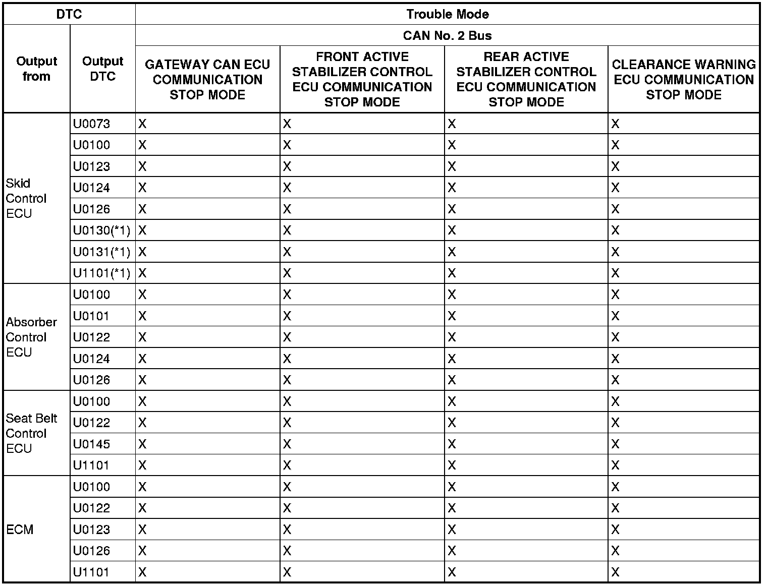 - *1: The ECM is malfunctioning if U0001 is output alone. Replace the ECM.