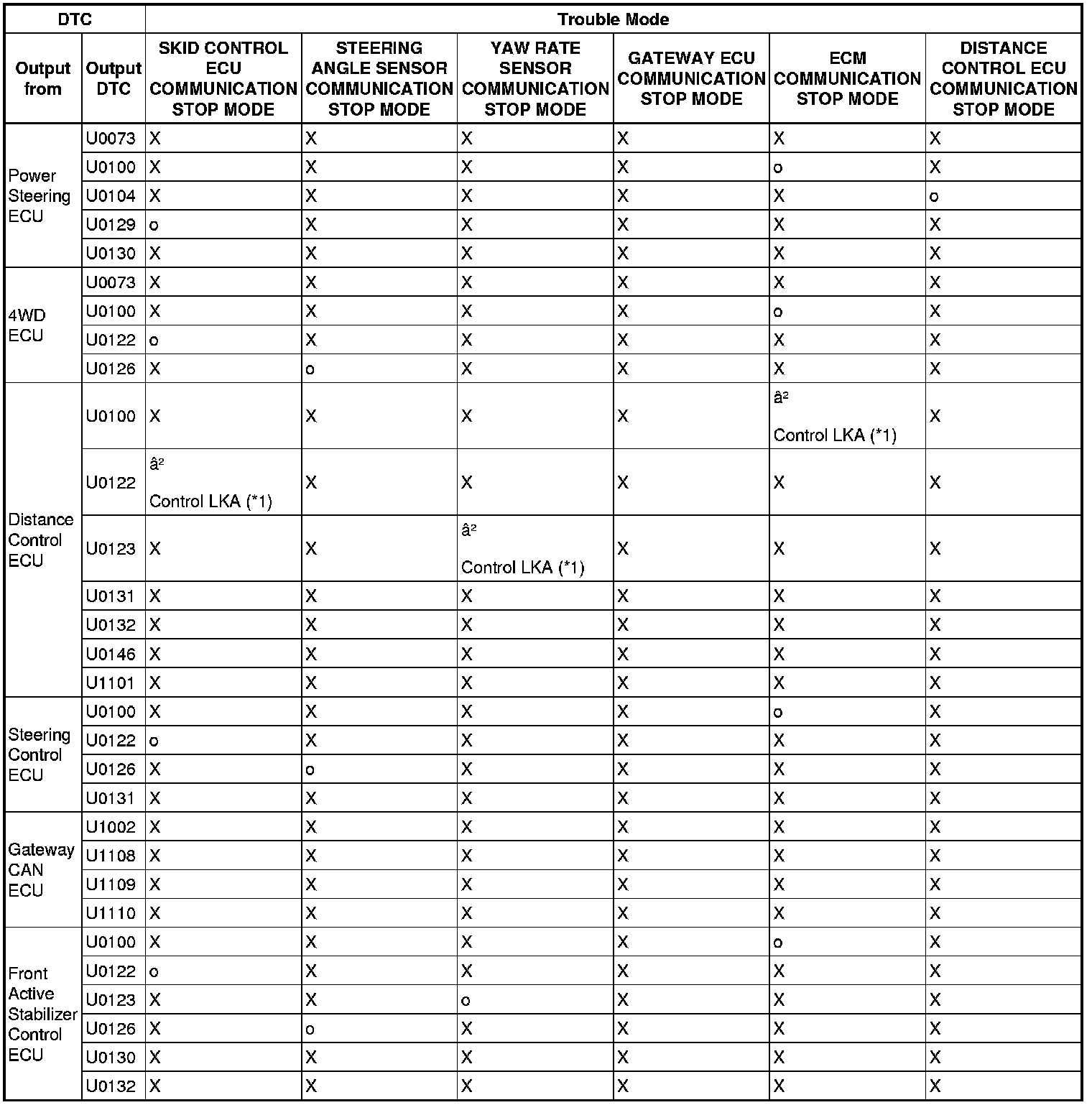 - *4: Displayed on the "communication malfunction DTCs" screen of the Techstream. If U0235 or U1102 is output alone, the CAN communication is normal U0235 for U0235, U1102 for U1102).