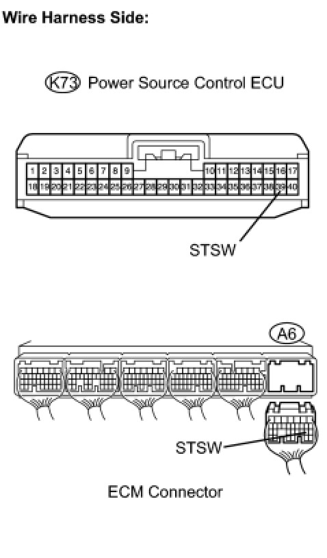 When the engine is cranking, the starter operation signal is sent to the ECM's STA terminal.