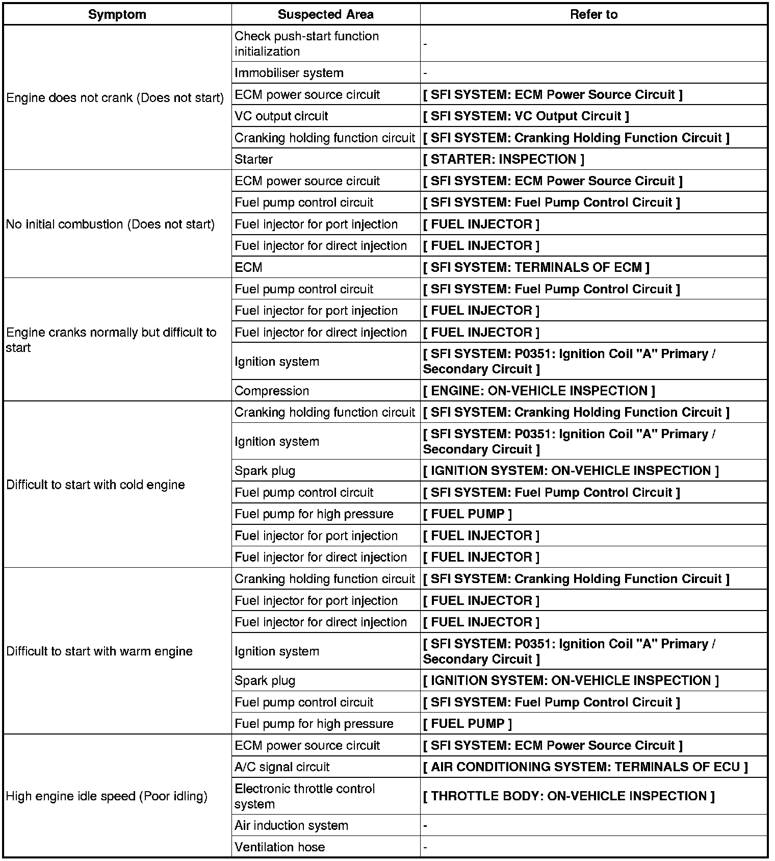 2GR-FSE ENGINE CONTROL SYSTEM: SFI SYSTEM: PROBLEM SYMPTOMS TABLE