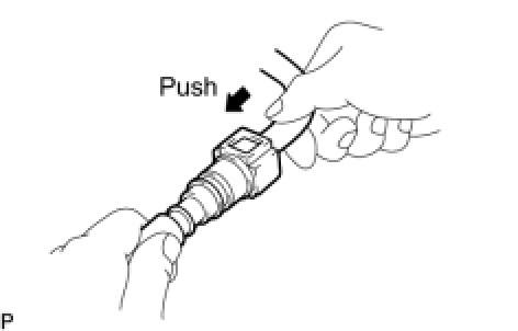 (2) Align the axis of the connector with the axis of the pipe. Push the pipe into the connector until the connector makes a "click" sound. If the connection is too tight, apply a light coat of fresh engine oil to the tip of the pipe.