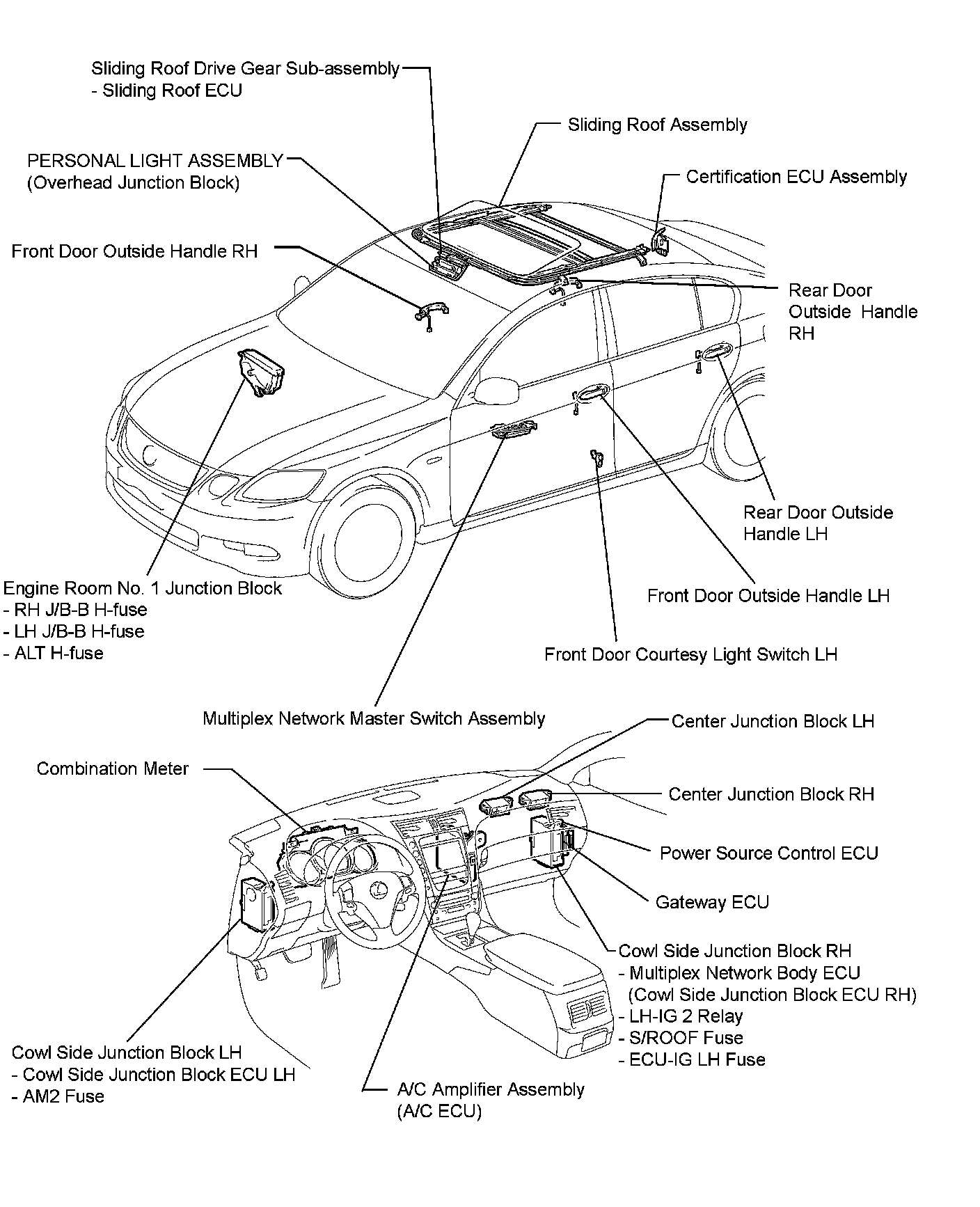 SLIDING ROOF: SLIDING ROOF SYSTEM: PARTS LOCATION