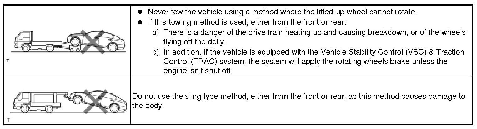- For example, the towing methods shown below are dangerous or damage the vehicle, so do not use them.