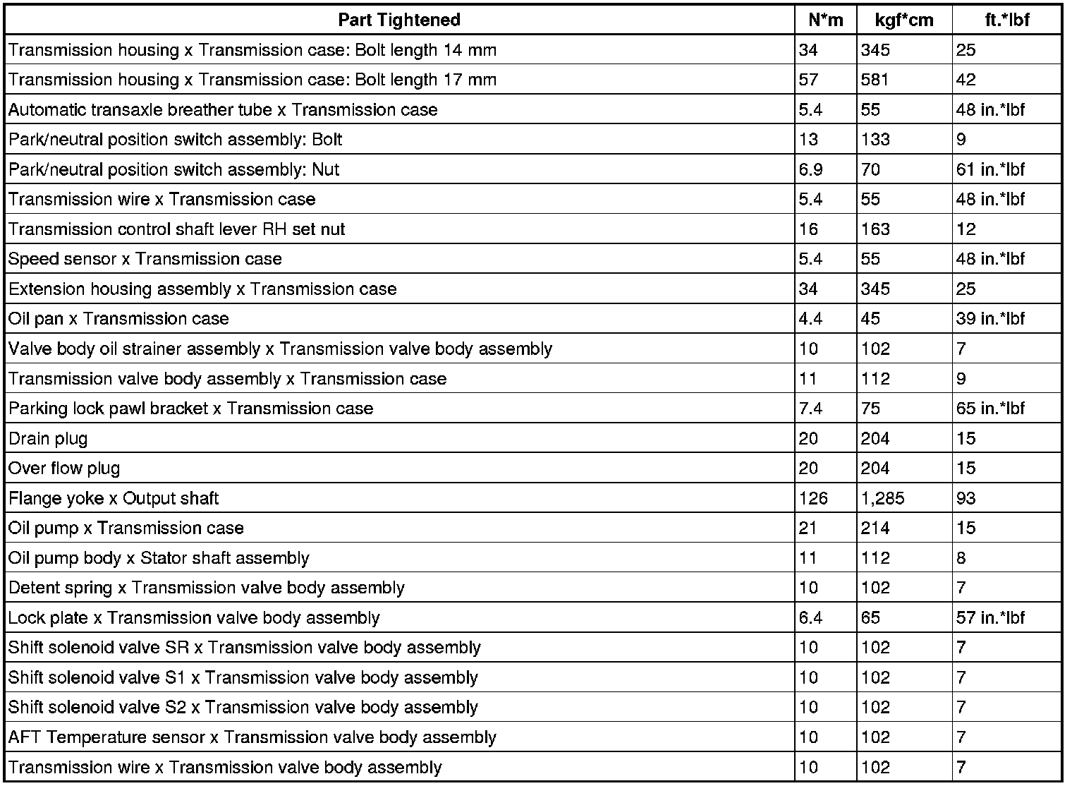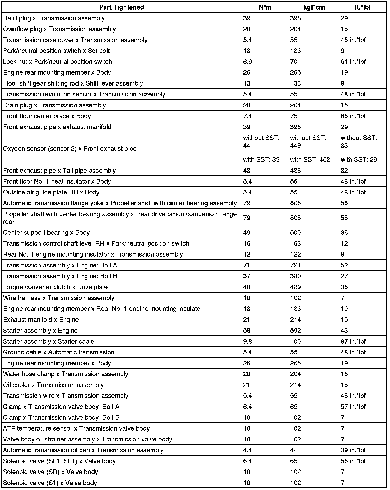 SERVICE SPECIFICATIONS: A760E AUTOMATIC TRANSMISSION: TORQUE SPECIFICATIONS