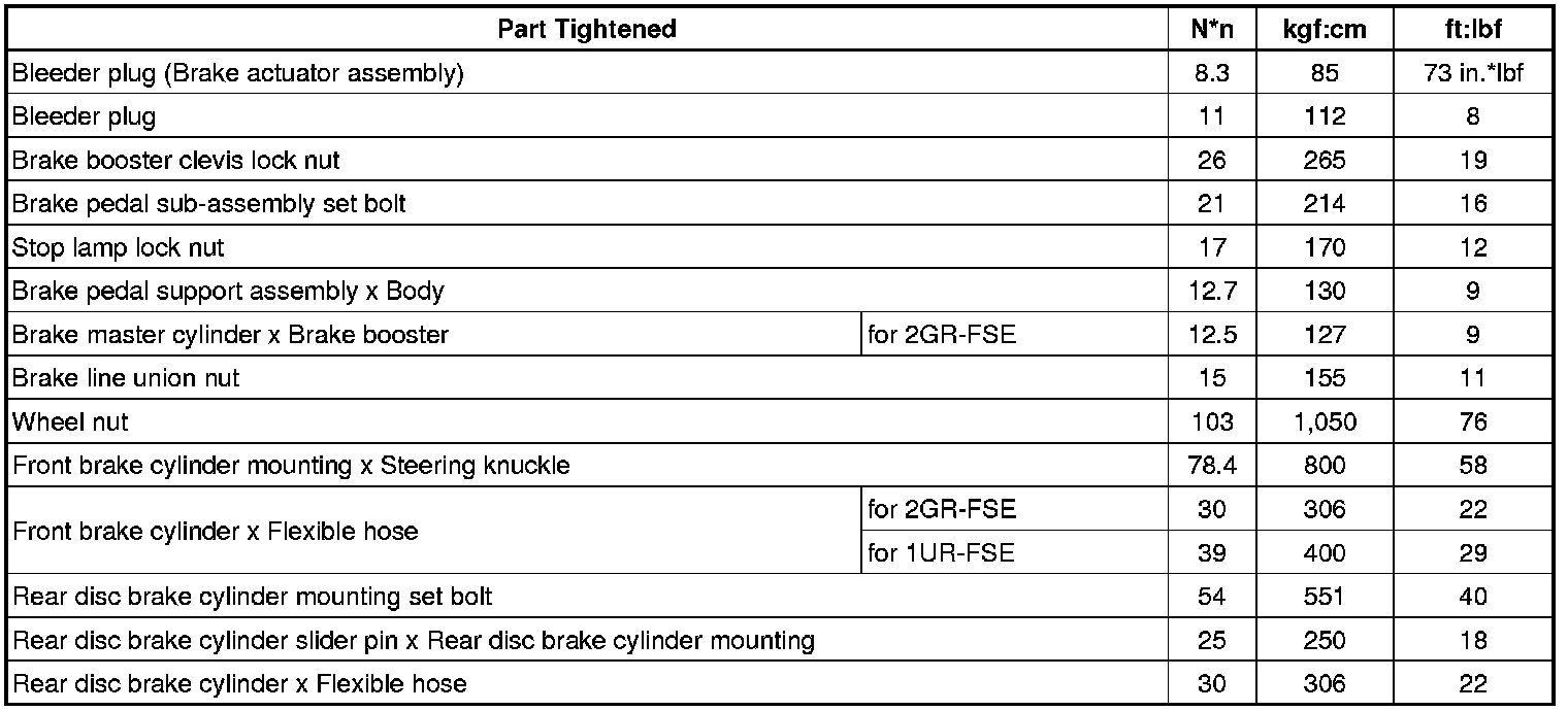 SERVICE SPECIFICATIONS: BRAKE: TORQUE SPECIFICATIONS