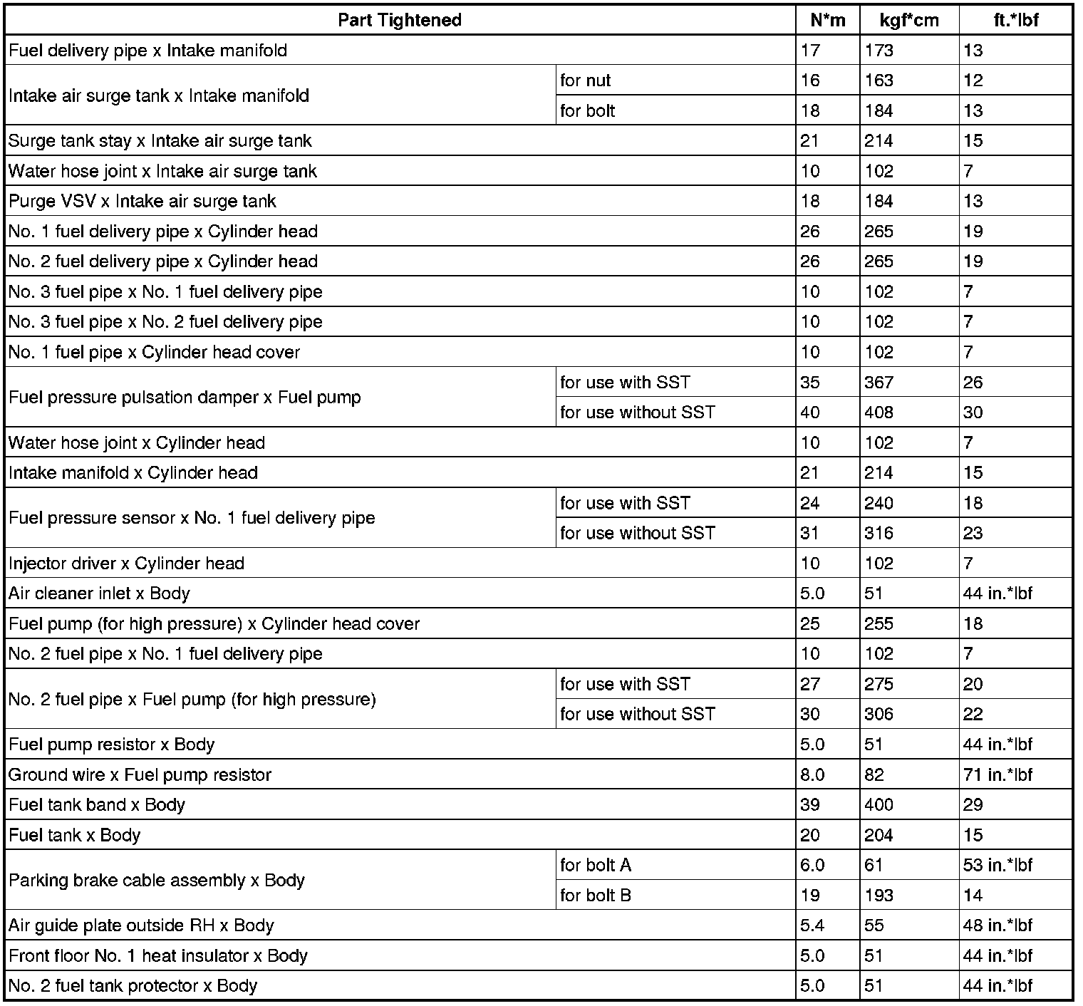SERVICE SPECIFICATIONS: 2GR-FSE FUEL: TORQUE SPECIFICATIONS