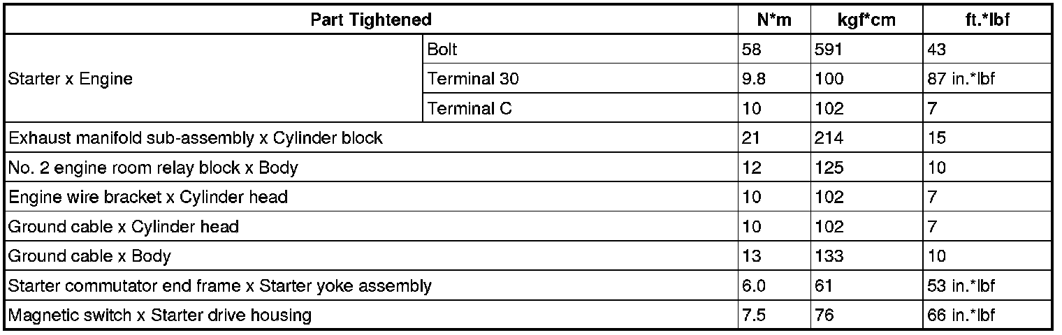 SERVICE SPECIFICATIONS: 2GR-FSE STARTING: TORQUE SPECIFICATIONS