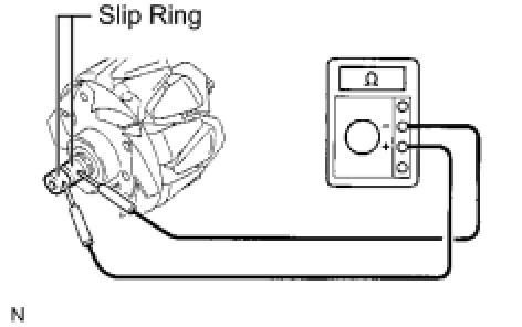 (1) Using an ohmmeter, measure the resistance between the slip rings.
