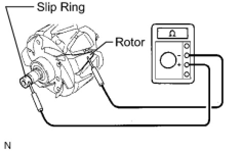 (1) Using an ohmmeter, measure the resistance between the slip ring and rotor.