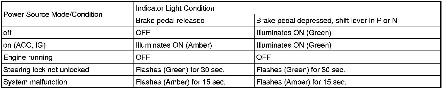 - The amber and green LEDs are for the indicator lights. The driver can check the present power source mode and whether the engine can start or not in accordance with the illumination state of the indicator light.