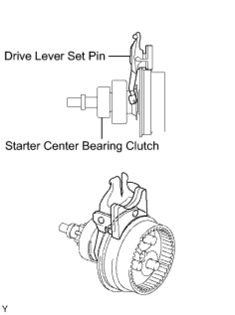 (b) Install the drive lever set pin onto the starter center bearing clutch.
