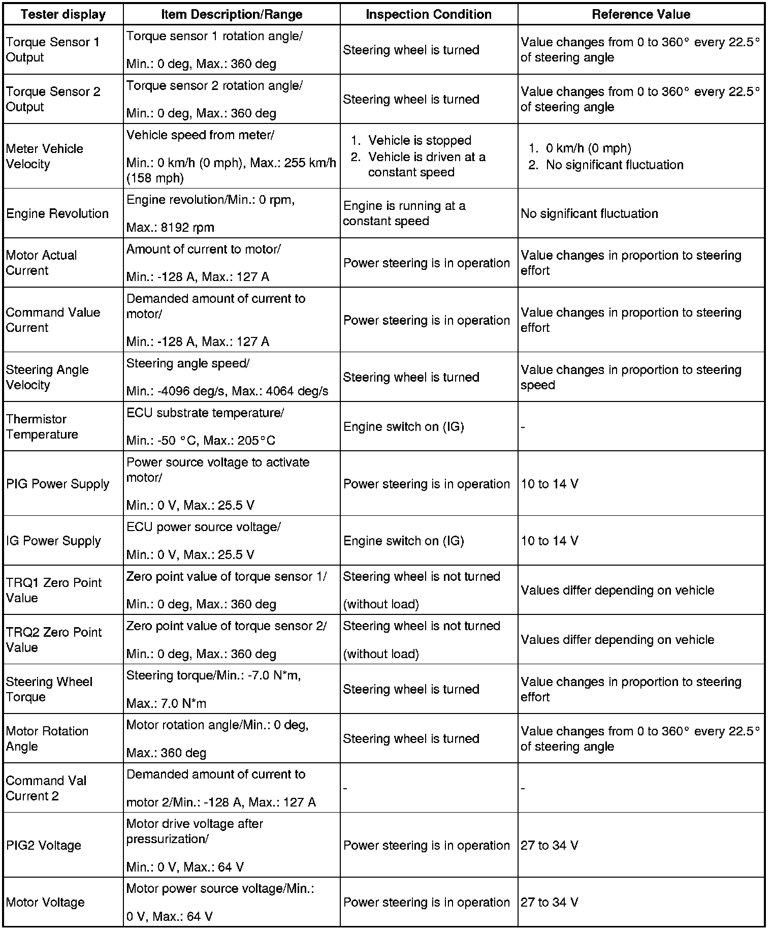POWER STEERING: ELECTRONIC POWER STEERING SYSTEM: FREEZE FRAME DATA