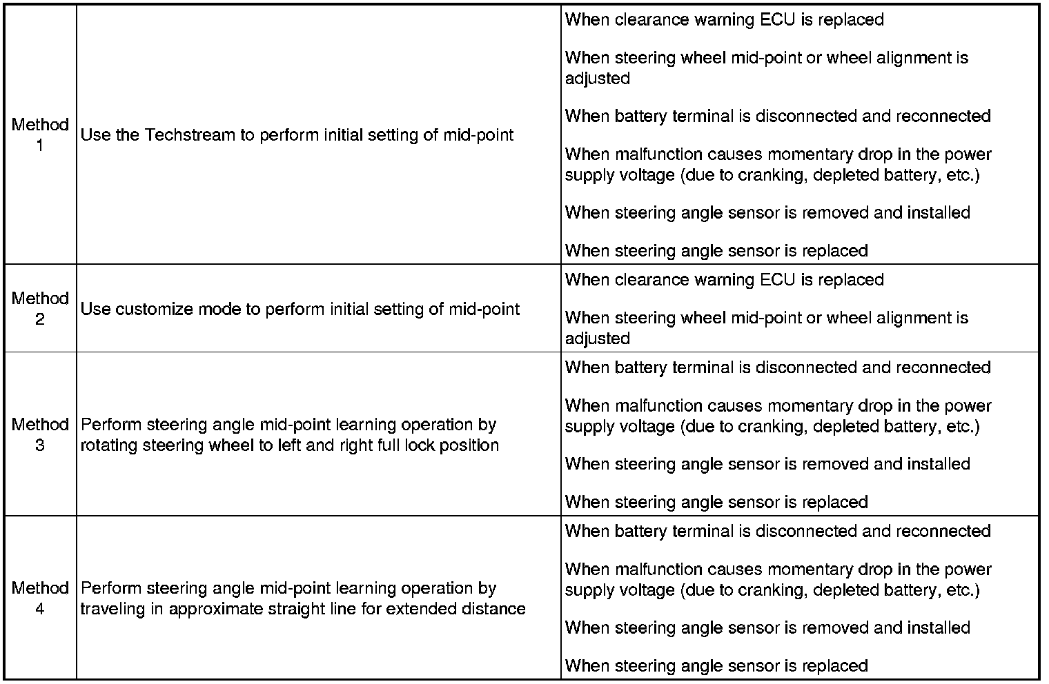 HINT: The mid-point learning operation (steering angle mid-point, maximum steering angle) can be performed using 4 methods: