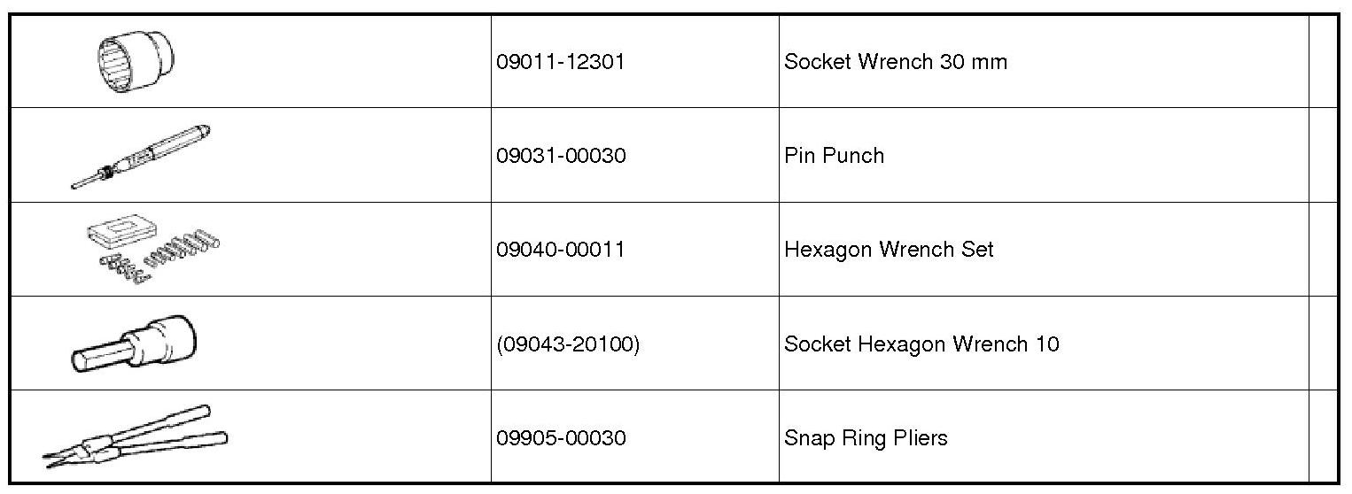 PREPARATION: DIFFERENTIAL: RECOMMENDED TOOLS