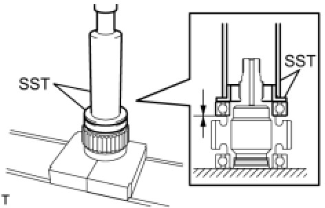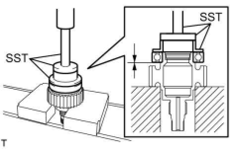 (a) Using SST and a press, install a new transfer driven sprocket bearing to the transfer front driven clutch sleeve.