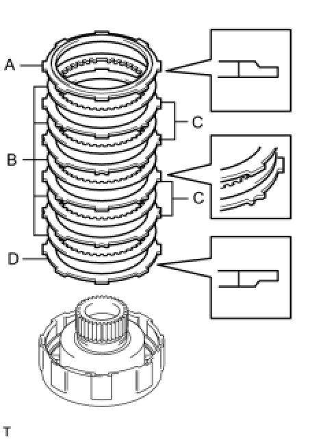 - D: Center differential clutch disc flange (No.2)