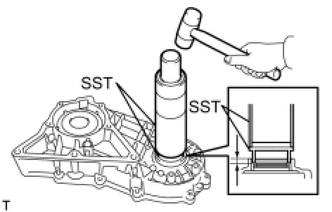 (a) Using SST and a press, install the transfer case bearing to the transfer case.