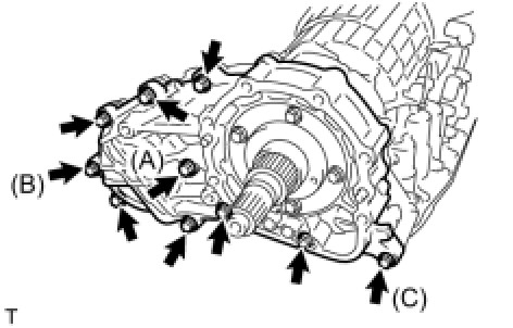(c) Install the clamp to the transfer case with the bolt.