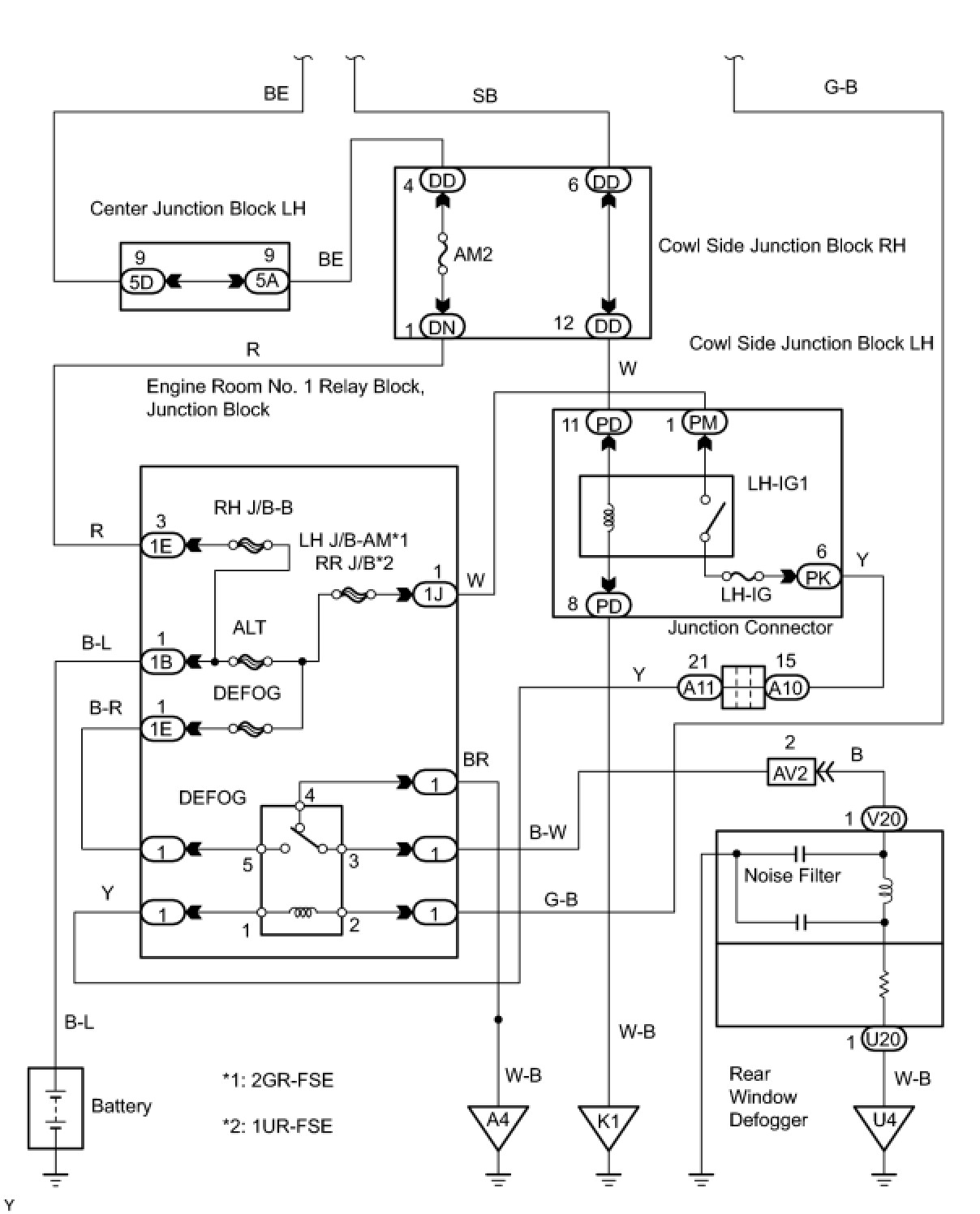 B -- INSPECT FUSE (DEFOG, ALT, LH J/B-AM, RH J/B-B, AM2, LH-IG)