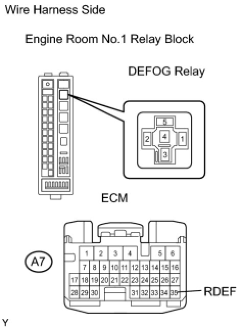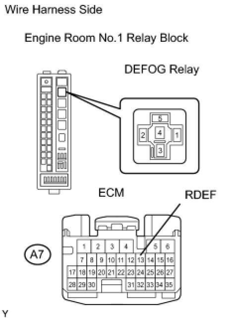 (b) Disconnect the DEFOG relay from the engine room No.1 relay block.