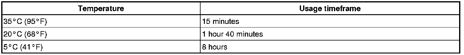 HINT: After cutting off the tip, use all adhesive within the time written in the table below.