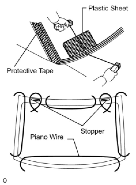 - To prevent the instrument panel from being scratched when removing the glass, place a plastic sheet between the piano wire and instrument panel.