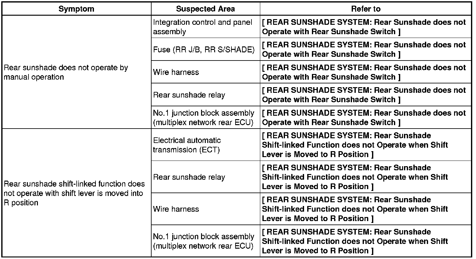 INTERIOR: REAR SUNSHADE SYSTEM: PROBLEM SYMPTOMS TABLE