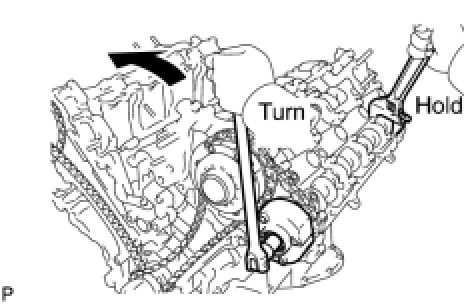 (b) Hold the hexagonal portion of the camshaft with a wrench and loosen the bolt with a 12 mm hexagon wrench.