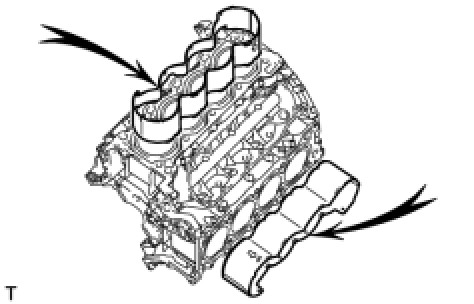 (b) Insert the blade of an oil pan cutter between the oil pans. Cut through the applied sealer and remove the No. 2 oil pan sub-assembly.