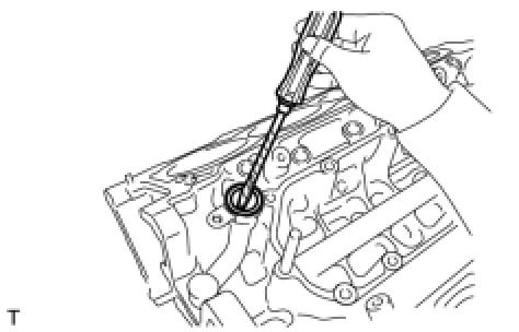 (a) Using a screwdriver, pry out the oil return pipe gasket.