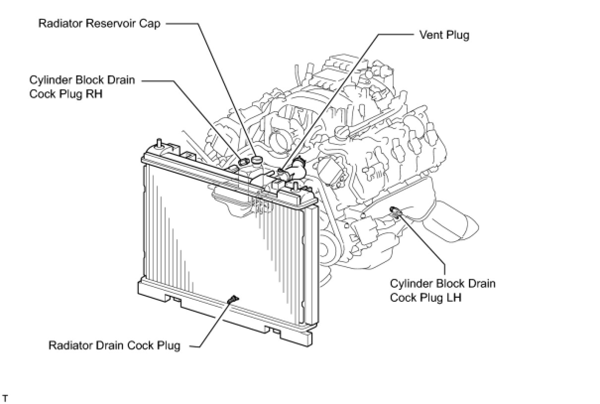 Do not loosen the radiator drain cock plug while the engine and radiator are still hot. Pressurized, hot engine coolant and steam may be released and cause serious burns.