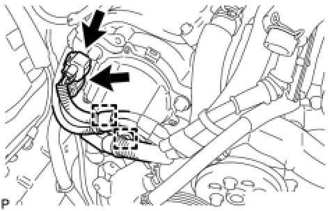 (a) Disconnect the 2 camshaft timing control motor connectors and 2 engine wire clamps.