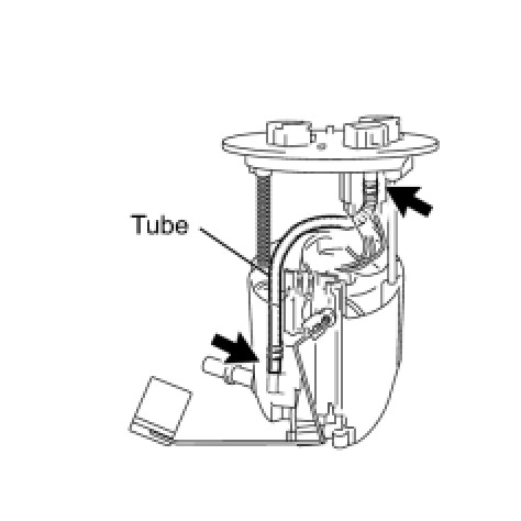 (a) Do not disconnect the tube shown in the illustration when disassembling the fuel suction tube assembly with pump and gauge. Doing so will cause reassembly of the fuel suction tube assembly with pump and gauge to be impossible as the tube is welded to the plate.