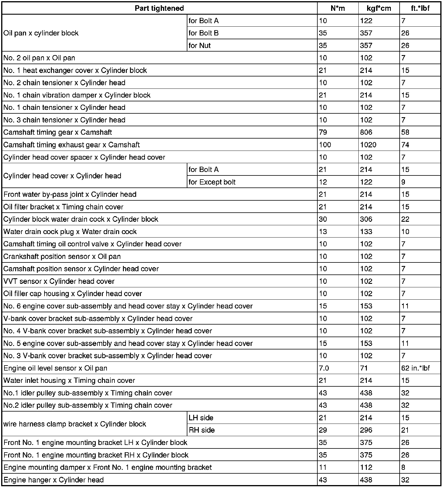 SERVICE SPECIFICATIONS: 1UR-FSE ENGINE MECHANICAL: TORQUE SPECIFICATIONS